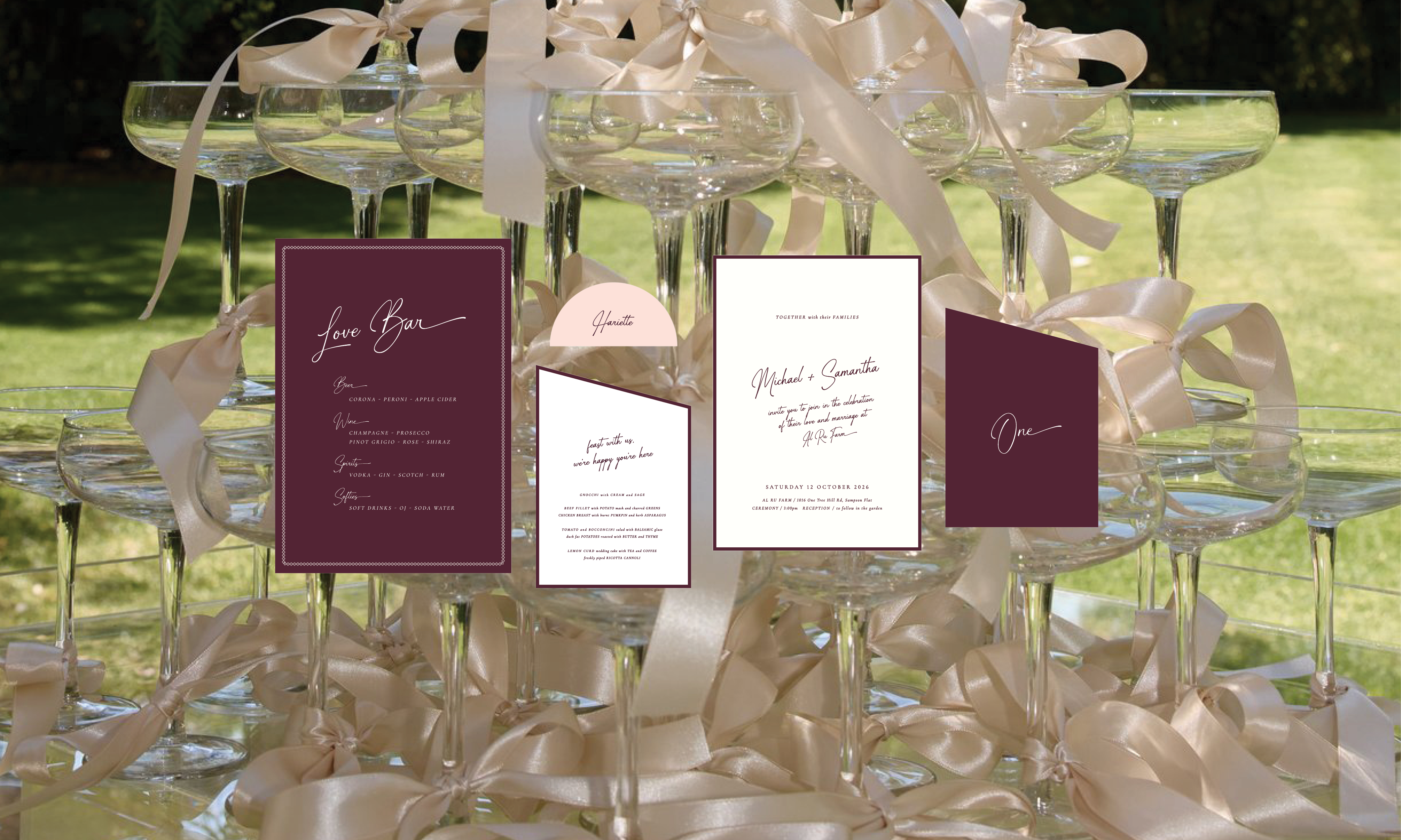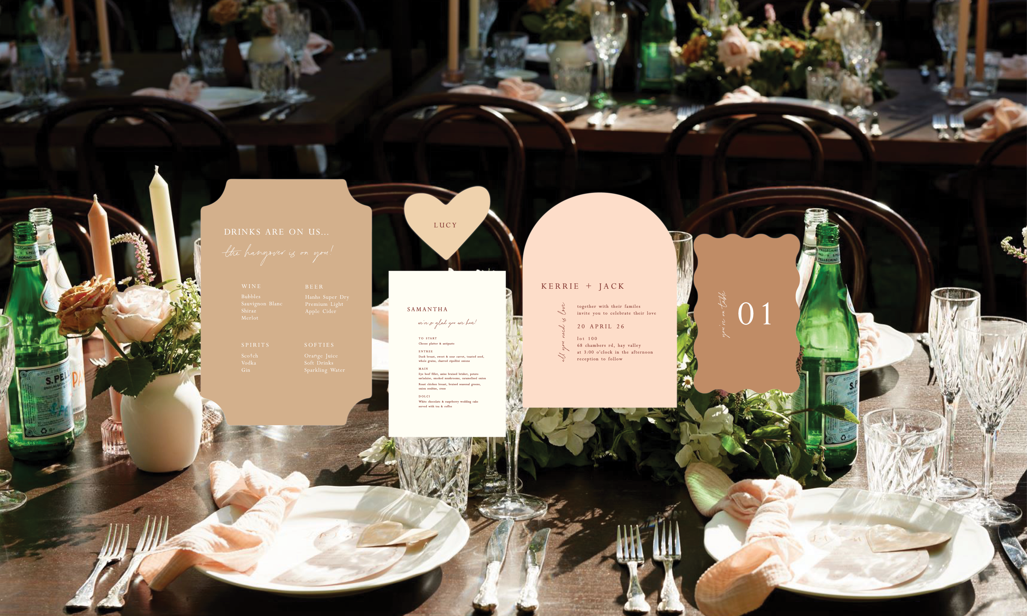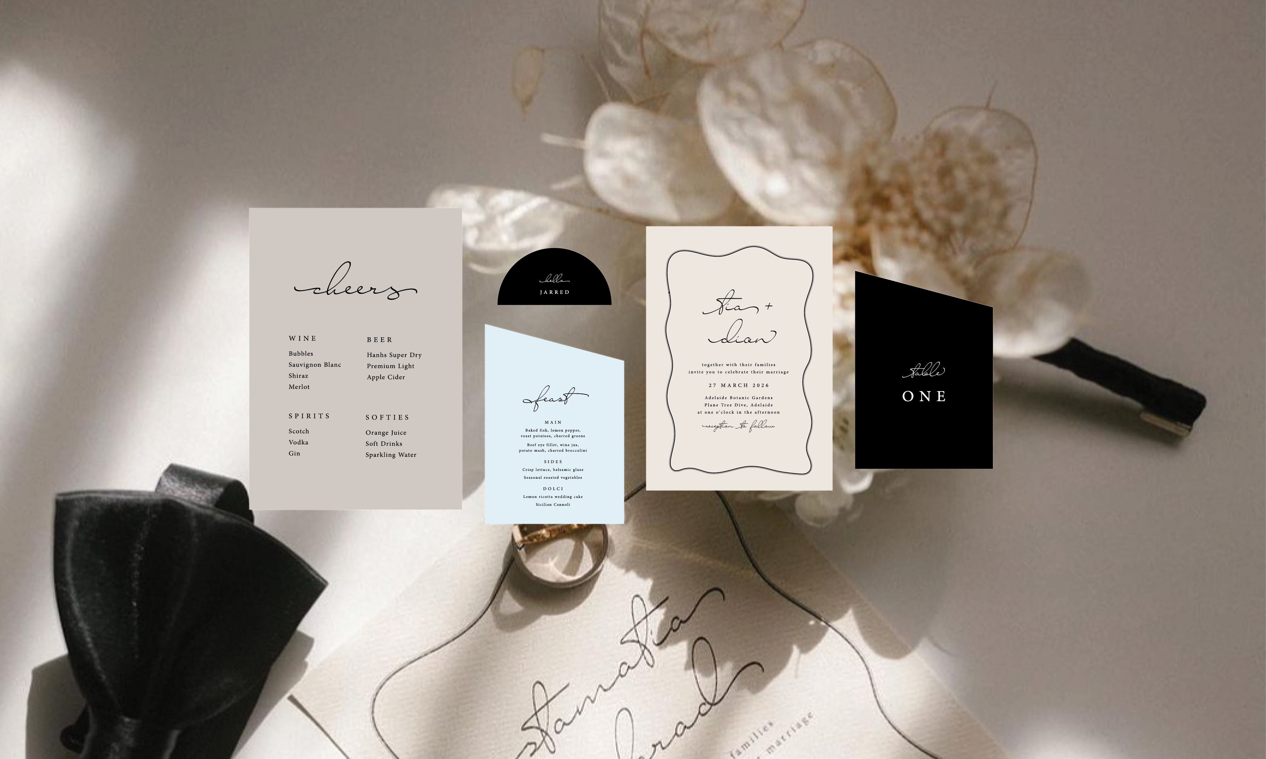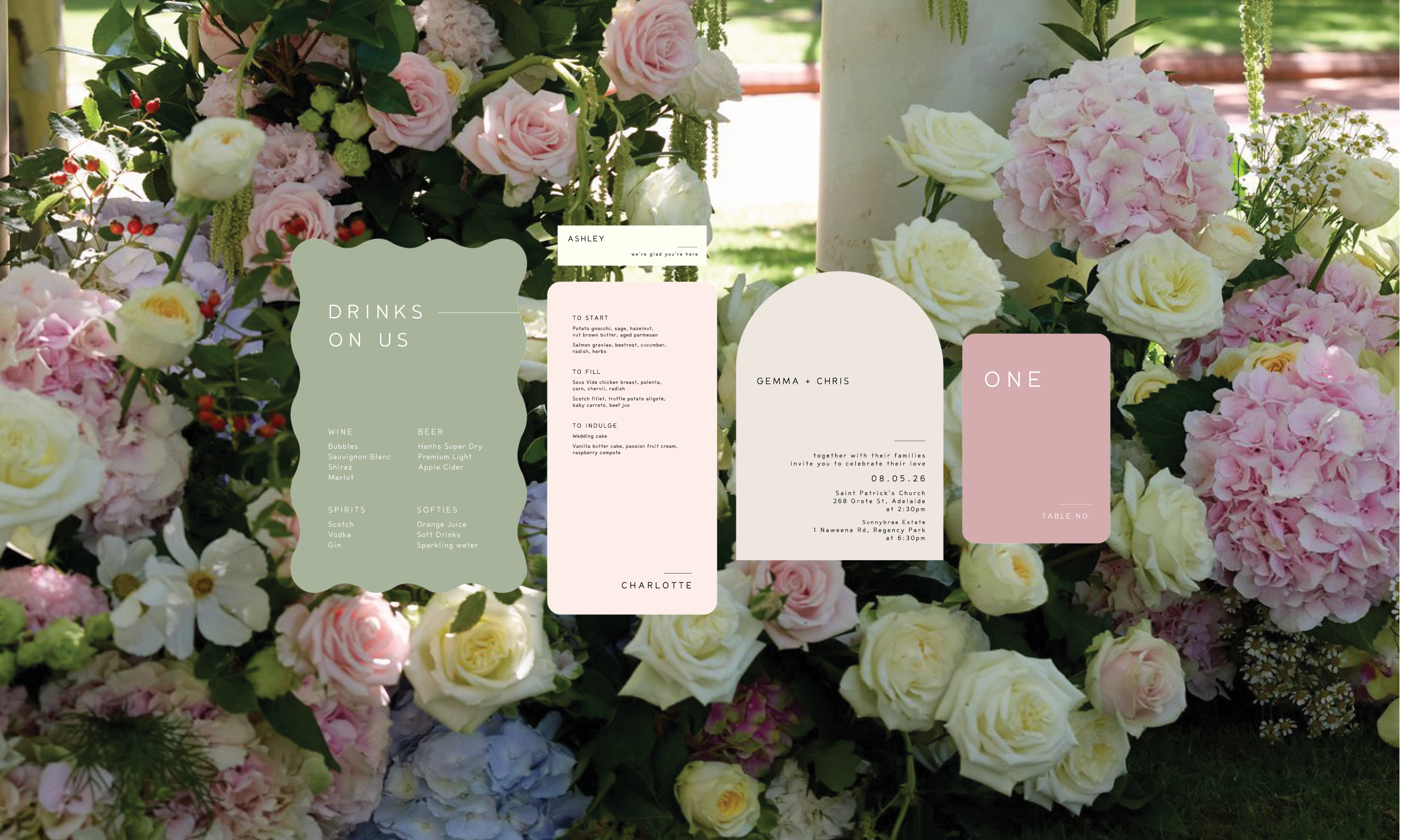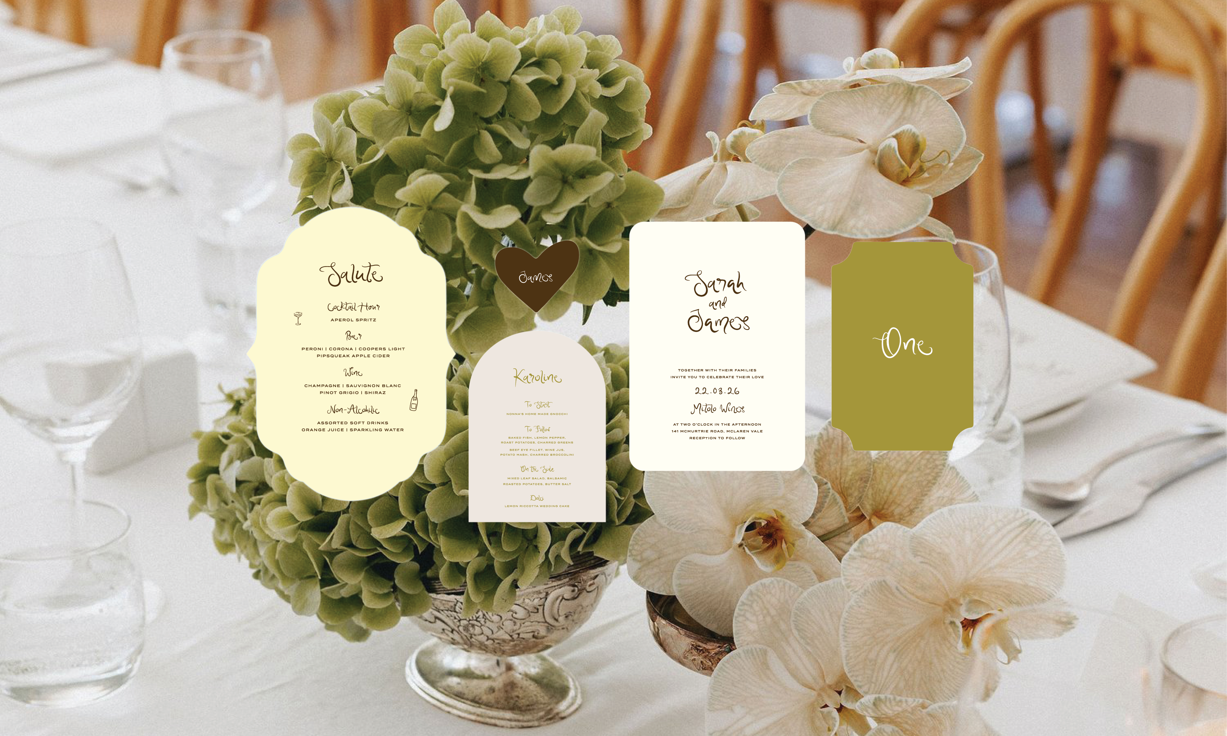 "We just wanted to say thank you so much for creating our wedding menus! They are perfect and will be such a great stand out on the day. They are just what we imagined! We are both so appreciative of your support and goodwill with all our stationery."