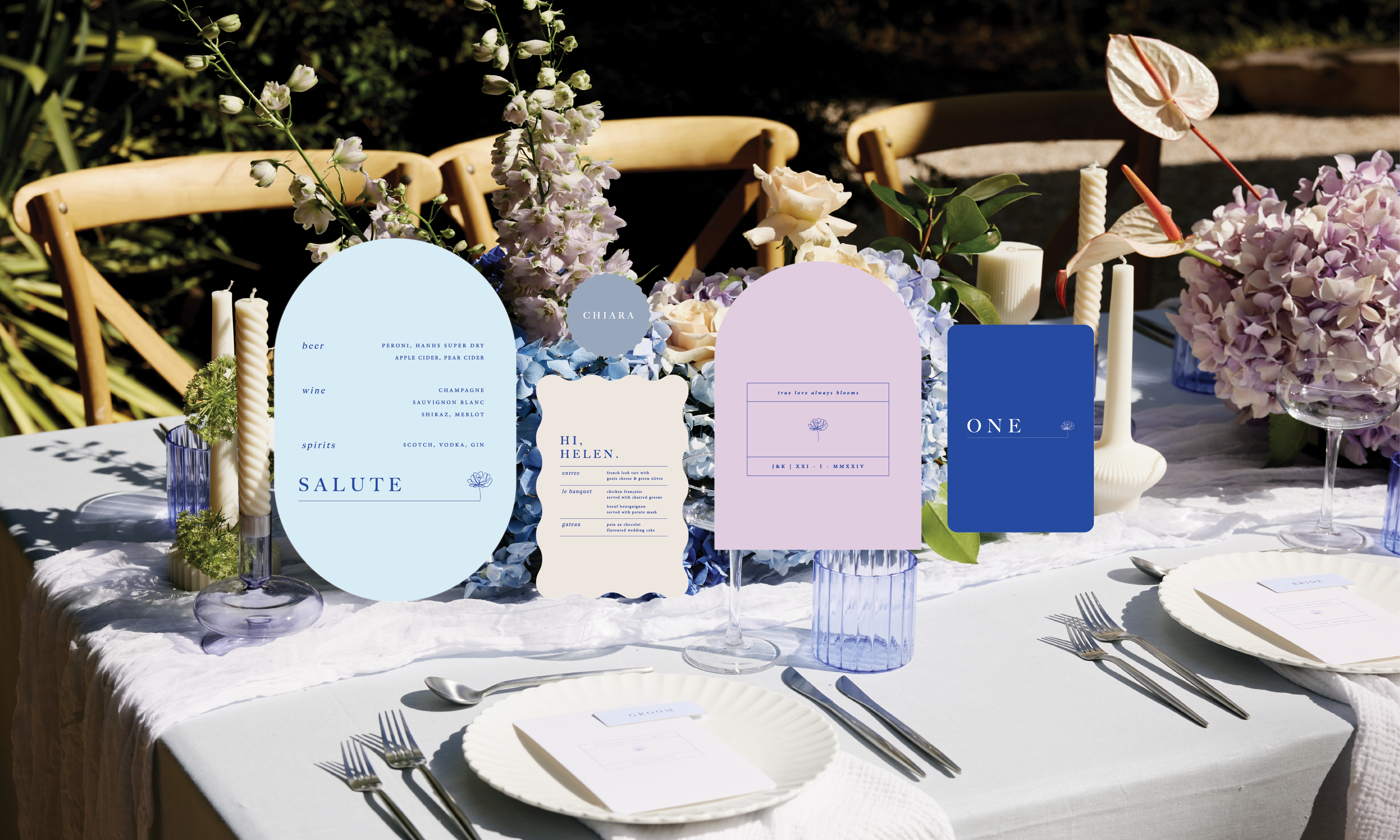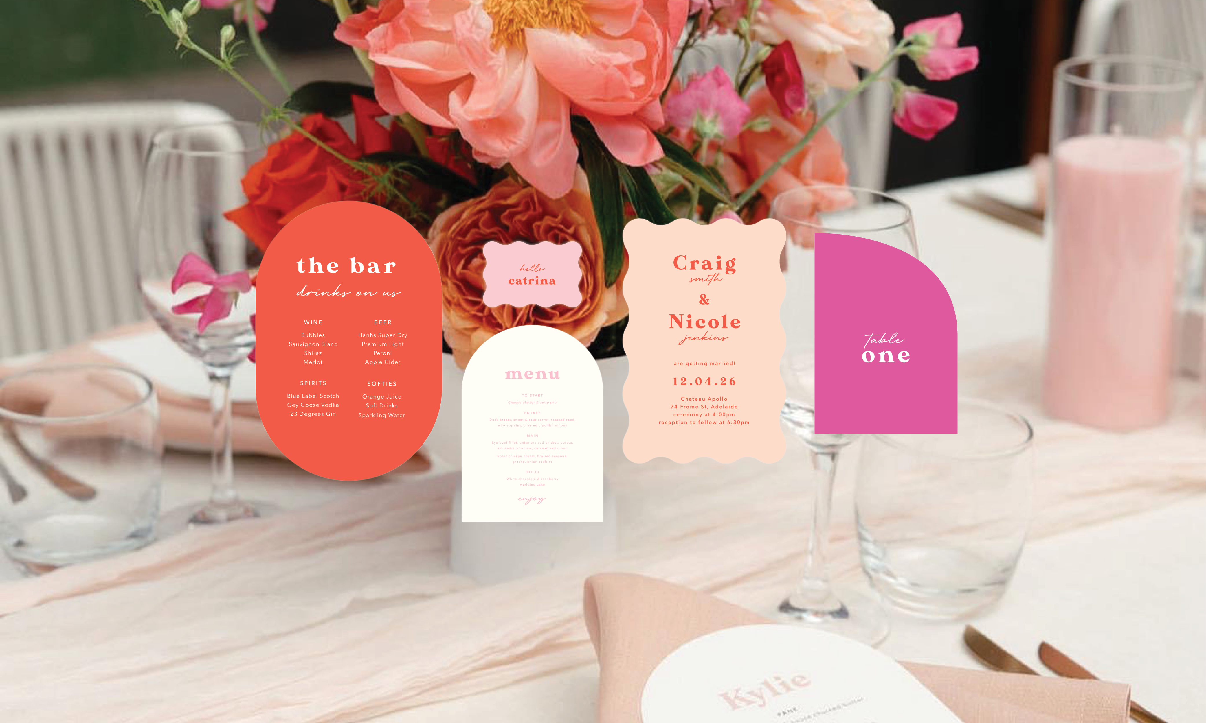 Enhance your event with our on the day stationery collections. Coordinate your stationery with your invitations or select something completely new! Let your creativity shine and personalise with your preferred colours and shapes.