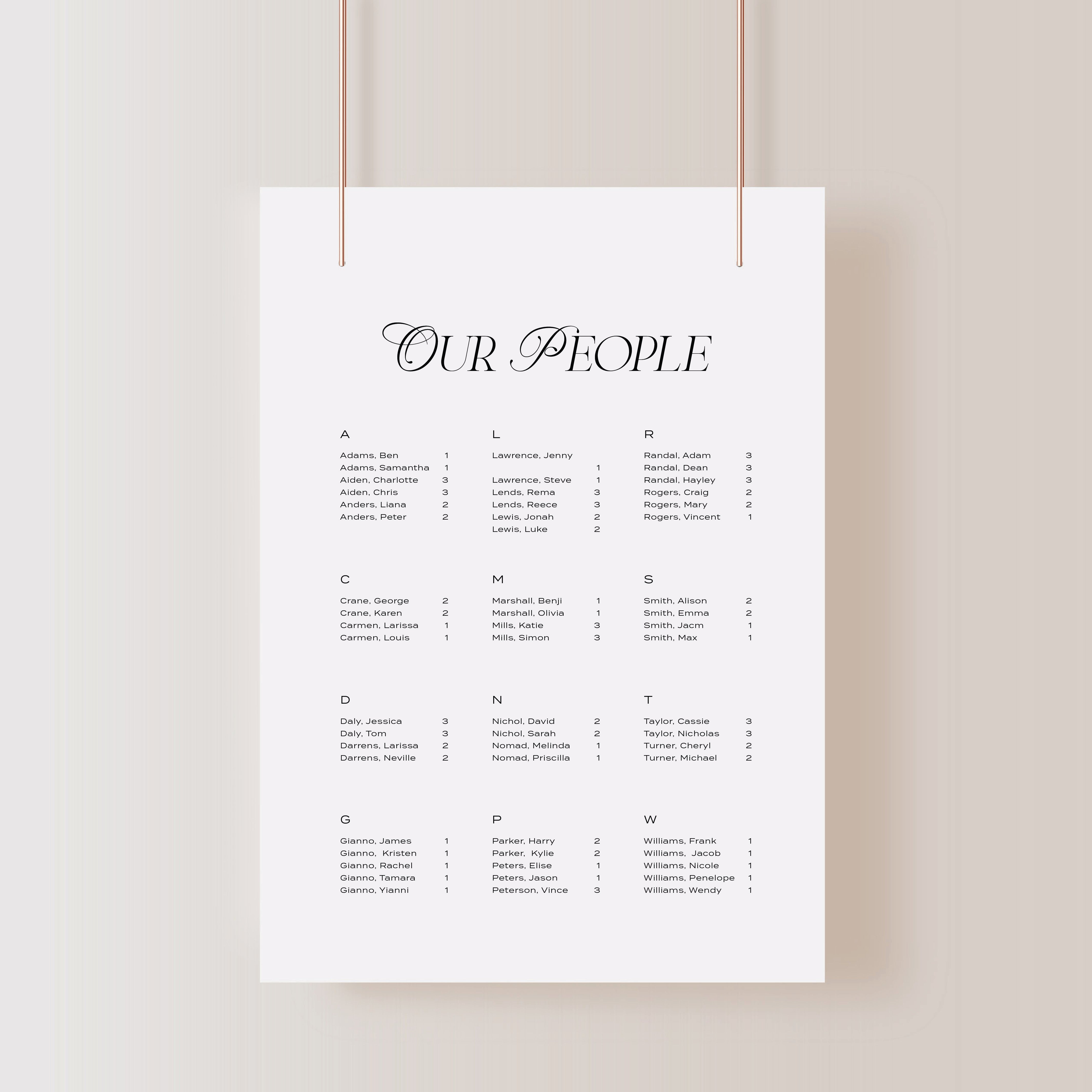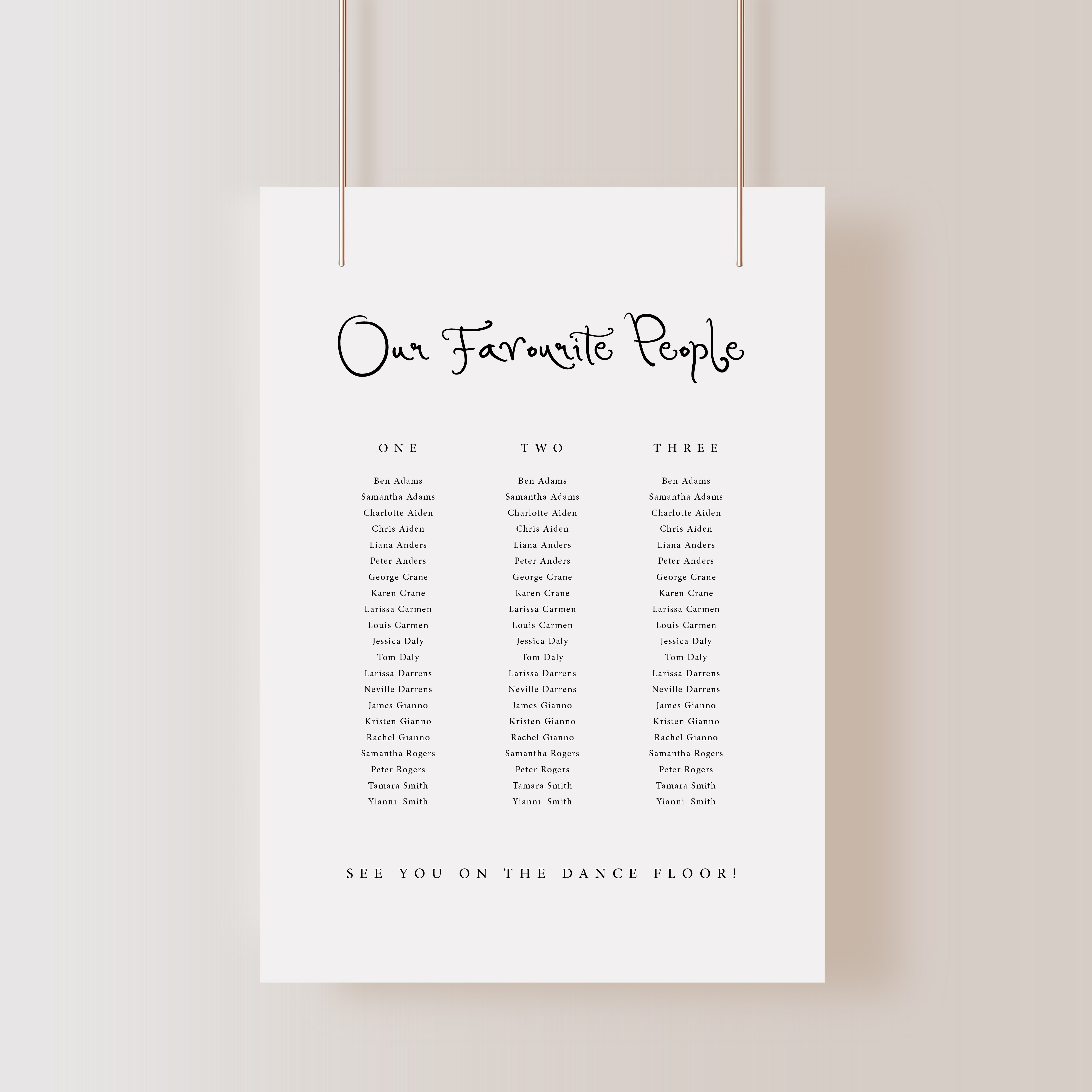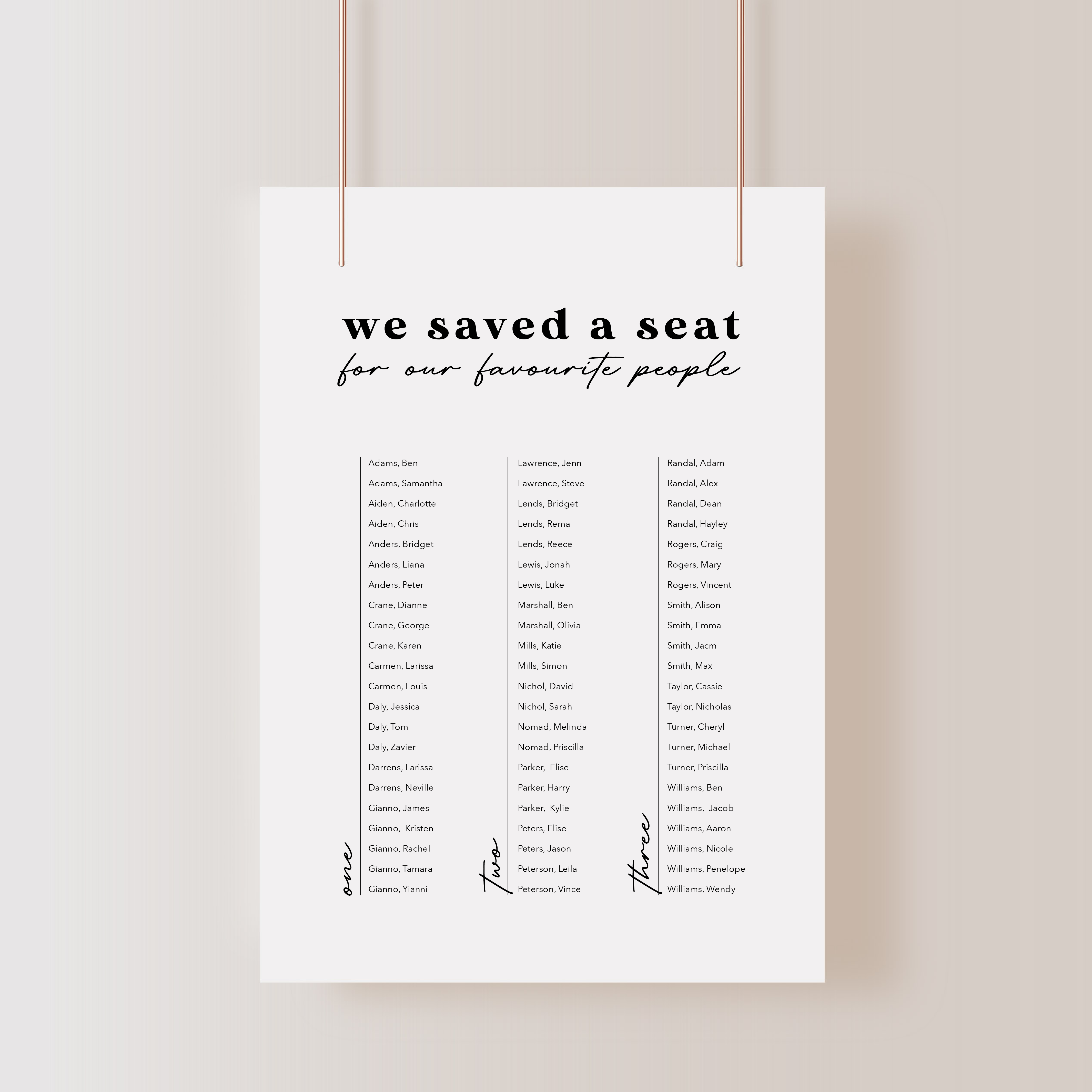 • Please provide seating information how you would like it displayed (eg. alphabetical order from surname or first name, or by tables)